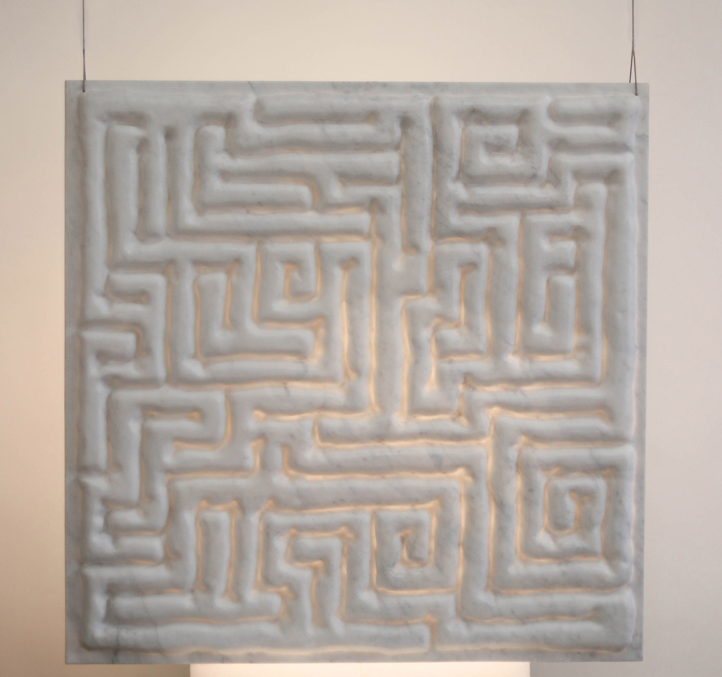 Le cerveau déployé Labyrinthe se veut une réinterprétation du cœur de nos méninges. Il dévoile un cheminement vers un graal caché (un trésor ?). Une dimension de fragilité et de transparence est ici rendue possible grâce au traitement du marbre sculpté très finement, jusqu’à le rendre translucide, presque immatériel. Cela évoque tout à la fois la fragilité de la vie (allusion aux vanités), le vitrail et la spiritualité d’une lueur extérieure à l’homme, ou encore les notions d’idée, de lumière, de conscience.