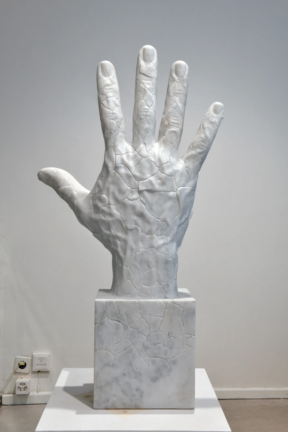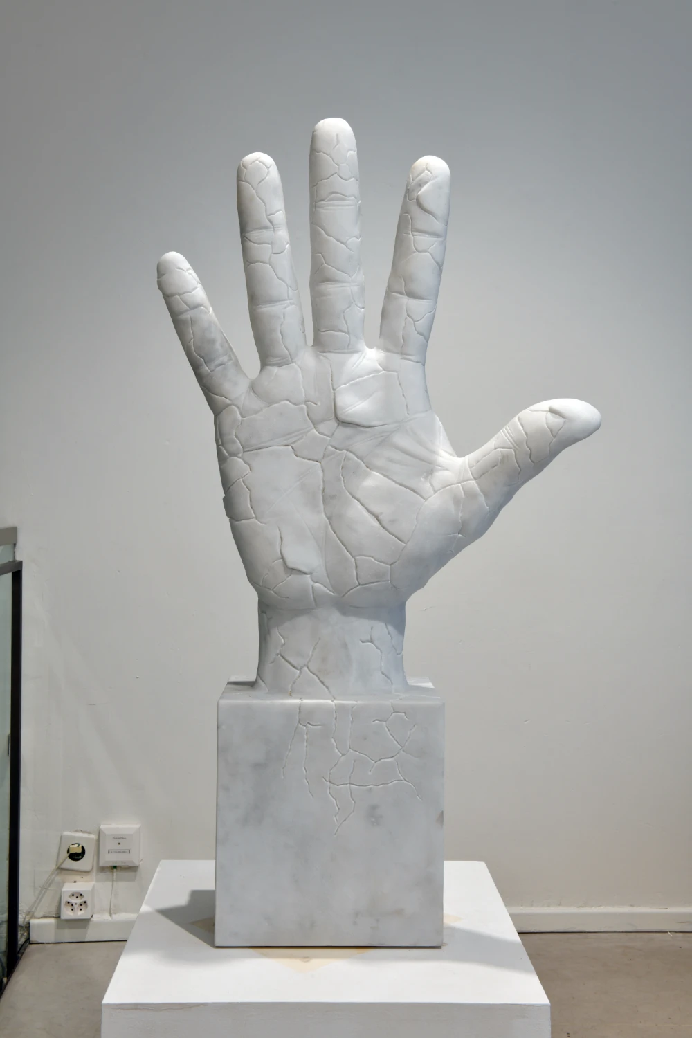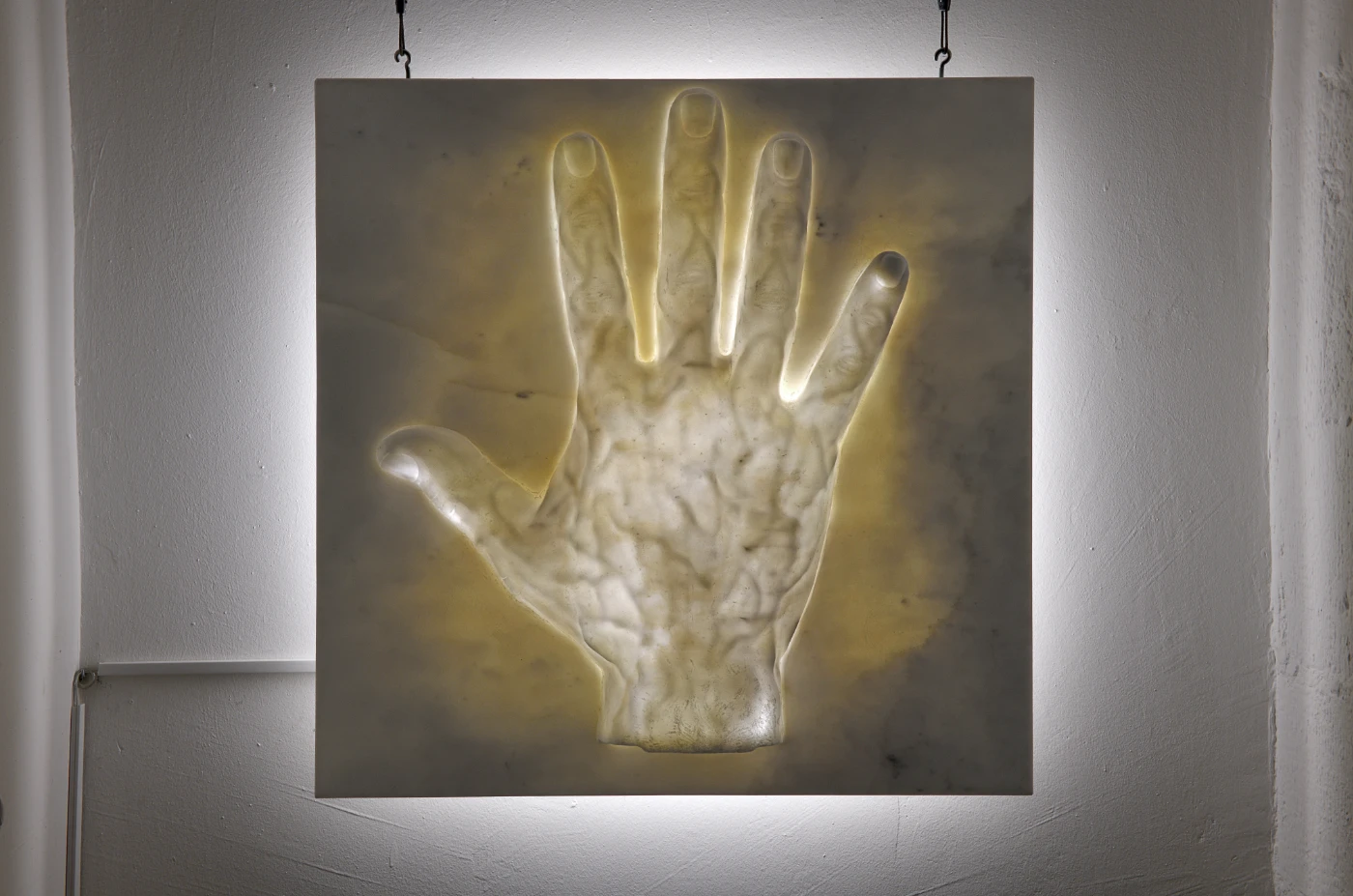 Sur le thème LUCKY LOSER, les travaux récents ont en commun une recherche de collaboration entre technologie et savoir-faire manuel. Dans une époque où la machine remplace la main presque sur toutes les tâches, tentative est faite ici d’explorer ce que la main peut apporter à la machine via la recherche de formes que ni l’une ni l’autre ne pourraient réaliser seules. Trois pistes sont ici explorées. La première cherche/crée des formes inaccessibles à la robotique, sous peine de cassée le marbre (par exemple le virus du COVID). La deuxième s’inspire des objets/design typiques de la sphère digitale (émoji, QR codes). La troisième utilise les outils numériques pour façonner des formes inaccessibles ou non naturelles pour la main ou l’esprit humain (essais encore confidentiels).